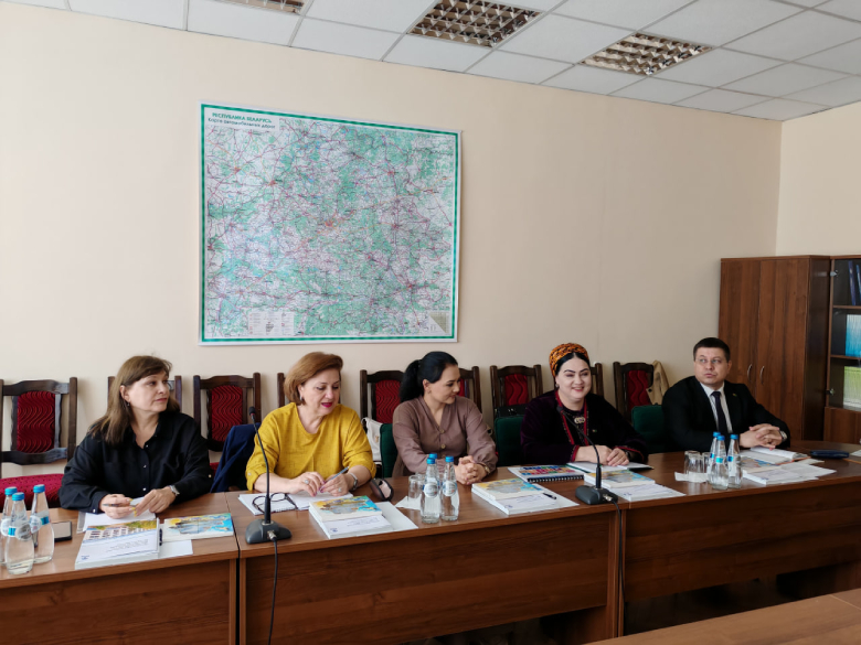 В рамках визита туркменская делегация провела встречу с руководством и сотрудниками НИЭИ Минэкономики. Представители Министерства финансов и экономики, а также Государственного комитета Туркменистана по статистике ознакомились с практикой разработки национальных и региональных стратегий устойчивого развития; изучили методологию и подходы к прогнозированию социально-экономического развития, механизмы мониторинга и оценки реализации стратегий, программ, интеграции ЦУР в национальные стратегии и программы; обсудили вопросы определения целевых (прогнозных) значений ЦУР.