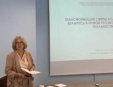 Для научной дискуссии был представлен доклад заведующей отделом развития сферы услуг Елены Волонцевич на тему «Трансформация сферы услуг Республики Беларусь в новой геоэкономической реальности». Докладчик представила результаты анализа механизмов воздействия новых факторов стрессового характера на сферу услуг в мировом и национальном аспектах, типичные изменения в структуре и динамике сферы услуг в стране в последние годы. В ходе научной дискуссии обсуждены основные подходы к стимулированию и развитию сферы услуг, аспекты, которые должны учитываться при разработке Концепции национальной стратегии устойчивого развития Республики Беларусь до 2040 года.