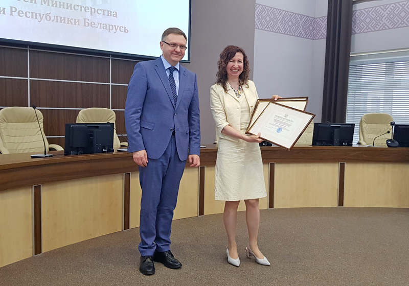 На мероприятии были вручены почетные грамоты и благодарности Министерства экономики. За высокий профессионализм, личный вклад в социально-экономическое развитие Беларуси почетными грамотами были отмечены сотрудники института: заведующий отделом эконометрики и моделей общего равновесия Наталья БОРЕЙКО, начальник отдела международной технической помощи Дина ГОНЧАРОВА, заведующий отделом демографических прогнозов и занятости Наталия ПРИВАЛОВА.