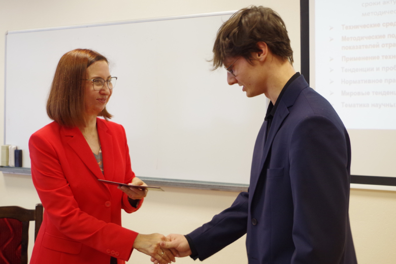 Директор НИЭИ Минэкономики Наталья Берченко поздравила новых сотрудников с вступлением в научное сообщество, рассказала о деятельности института, условиях работы, возможностях роста и развития, требованиях к компетенциям и результатам.