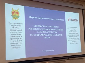 Научный сотрудник отдела оценки регулирующих воздействий Научно-исследовательского экономического института Министерства экономики Республики Беларусь Лилия Дворак приняла участие в научно-практическом круглом столе «Вопросы реализации и совершенствования положений законодательства об экономическом (деловом) риске»