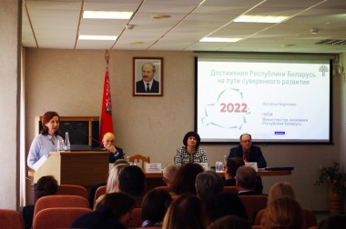 В своем докладе «Достижения Республики Беларусь на пути суверенного развития» Наталья Берченко в цифрах и фактах показала достижения страны в сфере экономики, представила результаты развития Республики Беларусь за 1995-2022 годы, динамики экспорта товаров и услуг, изменения параметров продовольственной безопасности страны, улучшения качества жизни населения, а также позиции республики в ключевых глобальных рейтингах. Были обозначены направления и меры экономической политики, реализация которых способствует укреплению экономического суверенитета и конкурентоспособности Беларуси.
