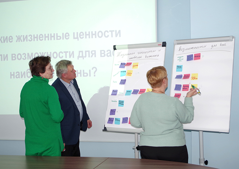 Объединившись в шесть исследовательских групп в соответствии с «картой поколений», сотрудники НИЭИ Министерства экономики совместно смоделировали целостную картину желаемого будущего к 2040 г. На этапе «Формирование общего понимания» эксперты определили наиболее важные жизненные ценности и возможности с точки зрения представителей всех поколений. В числе объединяющих ценностей: семья, здоровье, безопасность, возможность выбора, материальное благополучие, независимость, стабильность, самореализация, саморазвитие.