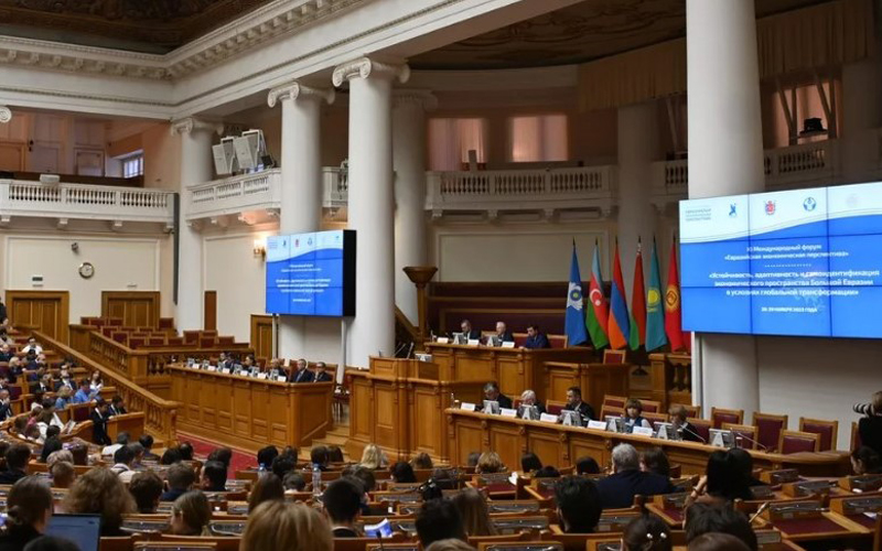 Как будет происходить переход евразийского экономического пространства на новый этап развития? Какой будет самоидентификация Большой Евразии в новых условиях: от чего она зависит и на что повлияет? На эти и многие другие вопросы спикеры из России, Беларуси, Кыргызстана, Азербайджана, Армении, Таджикистана ответили на пленарном заседании и в ходе работы шести тематических сессий: «Драйверы развития международной валютно-финансовой системы в Евразии»; «Развитие энергетических проектов и хабов в евразийском регионе: потенциал новых партнерств», «Трансформация геополитических процессов на евразийском пространстве в условиях новых вызовов»; «Новые векторы развития подготовки кадров для туристического сектора экономики Большой Евразии»; «Экономика данных – новый аспект цифровой повестки ЕАЭС»; «Реализация транзитного потенциала евразийских стран: интеграционная роль международных транспортно-логистических коридоров».
