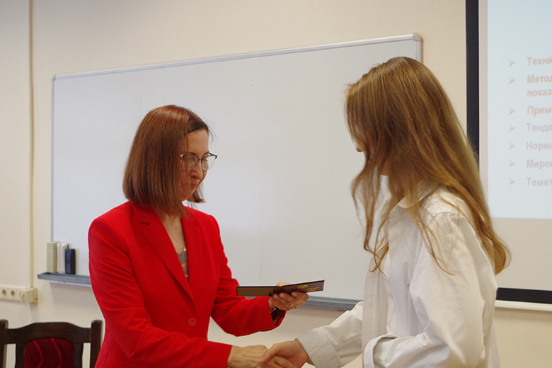 Директор НИЭИ Минэкономики Наталья Берченко поздравила новых сотрудников с вступлением в научное сообщество, рассказала о деятельности института, условиях работы, возможностях роста и развития, требованиях к компетенциям и результатам.